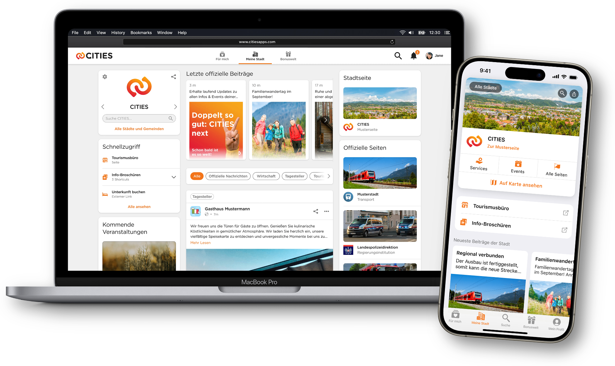 CITIES ist die offizielle digitale Plattform unserer Stadt/Gemeinde, mit welcher wir die Kommunikation zwischen Verwaltung, unseren Bürgerinnen und Bürgern sowie regionalen Betrieben & Vereinen verbessern. Durch die Einführung von CITIES schaffen wir eine direkte, transparente und effiziente Kommunikationslinie.