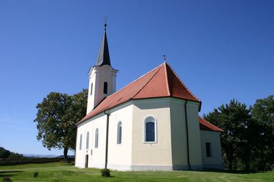 Unter Verwendung mittelalterlichen Bauwerks wurde die im 15. Jahrhundert errichtete Kirche 1733 von der Witwe des Grafen Ludwig von Batthyany renoviert und vergrößert. Der baroke Hochaltar stellt eine Kreuzigungsgruppe dar. Als besondere Sehenswürdigkeiten gelten zwei spätromantische Fenster mit dekorativer Malerei und die Sakramentsniesche mit gotischen Eisentürchen in der Sakristei.